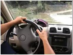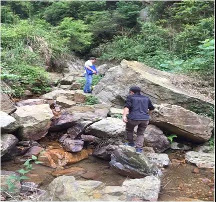 做像控的第二天,我們又遇到了一個難題,有一個落在山上的像控點,需淌過河道、翻越一座大山才能到達目的地。為了保證順利完成工作,組長決定進山刺點。剛進山的過程中,車沒開多遠,一條河阻擋了我們行進的腳步,河水很深,徹底沒路了,大家只能放棄乘車,慢慢的趟過去,然后繼續前行,山路上荊棘叢生,一不小心就會被劃傷。