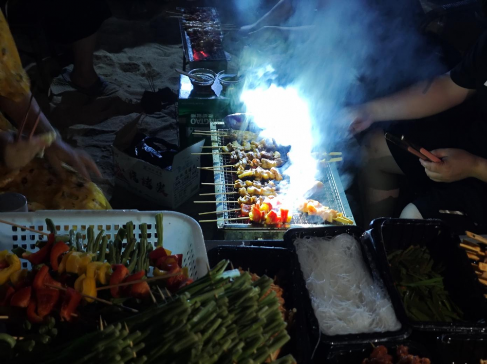 晚上來到海灘酒店,我們為晚上的沙灘燒烤音樂會做準備,女生清洗、腌制燒烤食材;男生準備桌椅板凳等物件,大家齊心協力,忙的不亦樂乎。
